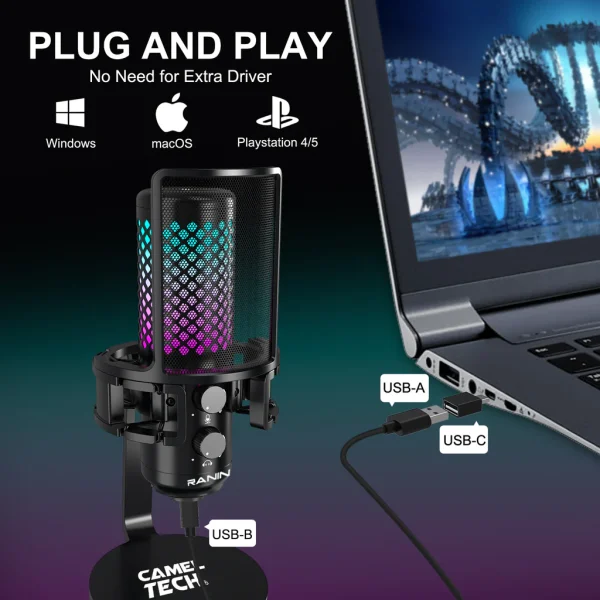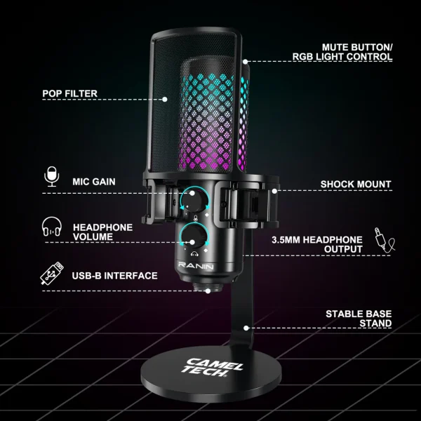 Camel Tech Ranin Microphone RGB – Black Color | CMT-RANIN
