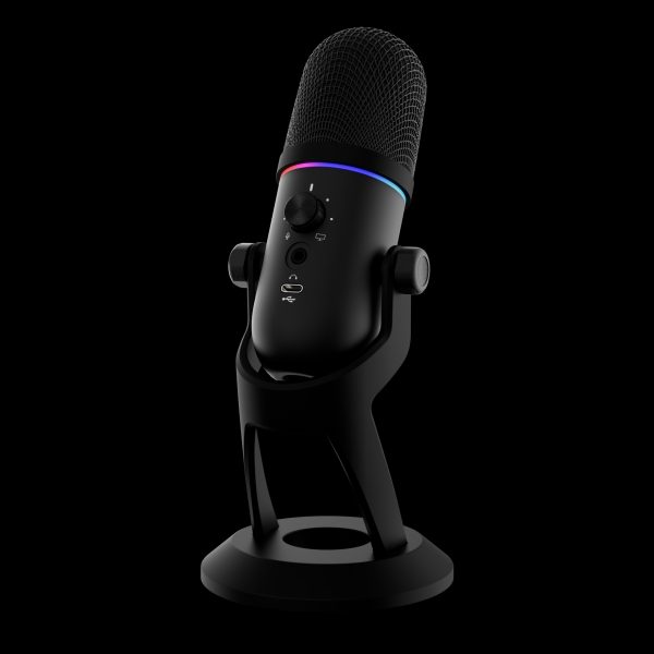 GAMDIAS PHEME M1 RGB Streaming Microphone, Supercardioid Pickup Pattern, 12 Modes Multi-Color RGB, 192kHz / 24bit Sample Rate, Touch Controls, Built-in Foldable & Adjustable Stand, Black | GD-PHEME-M1