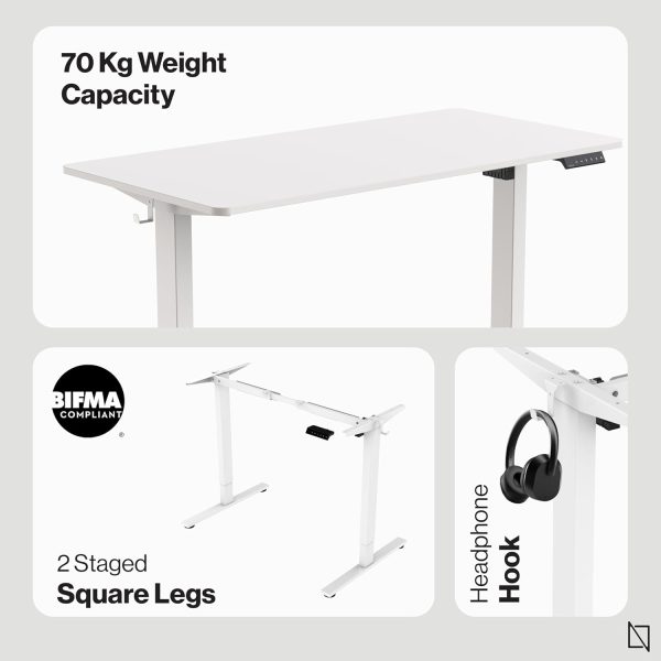 Navodesk LITE, Electric Height Adjustable Standing Desk, Electric Sit-Stand Desk with a Storage Hook for Small Backpacks or Heaphones, Ergonomic Adjustable Office Table (WHITE, 120 X 60 CM) | ND-F2LT-WT