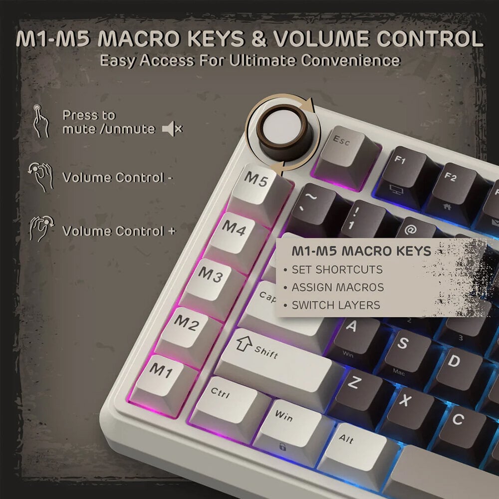 RK Royal Kludge L75 75% Tactile Beige Wireless Mechanical Keyboard – Knight Black | RK-L75-Knight-Black