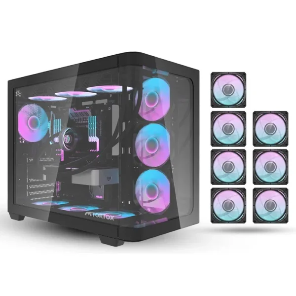 Tortox Curvo Gaming PC Case ATX/M-ATX/ITX Gaming PC Case with 7 * 120mm ARGB PWM Case Fans, 360MM Radiator Support, Type-C USB Port, 3*SSD Slot Gaming Case Black | CURVOV2-BLACK